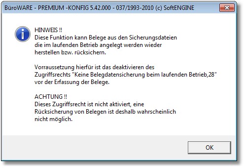 Mit dieser Funktion können Sie Belege aus einer Datensicherung wieder herstellen.
