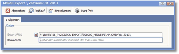 Der Dialog "GDPdU-Export" wird geöffnet.