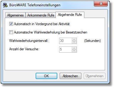 Aktivieren Sie den Status dieses Feldes, wenn BW Phone die Wahl automatisch wiederholen soll, wenn bei dem angerufenen Teilnehmer das Besetztzeichen ertönt.