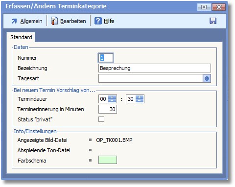 Speichern Mit [F10] wird die Terminkategorie gespeichert und der Dialog geschlossen.