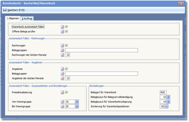 Aktivieren Sie den Status dieses Feldes, wenn der Warenkorb mit Angebotsbelegen gefüllt werden soll.