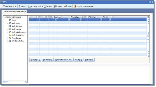 Das Programm öffnet die Wiedervorlagenverwaltung.
