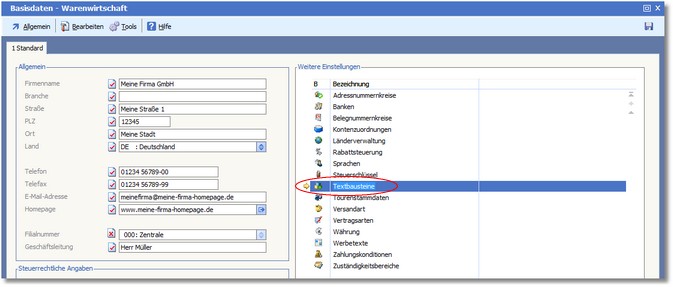 << Hier KLicken um eine Inhaltsübersicht anzuzeigen >> Navigation: Warenwirtschaft > Stammdaten > Basisdaten > Textbausteine |