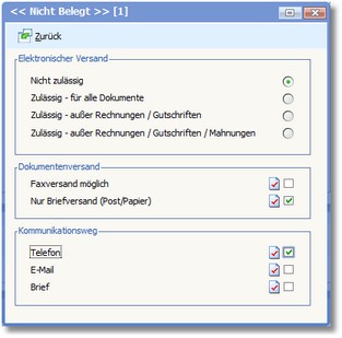 Aktivieren Sie den Status dieses Feldes, wenn der Versand der Dokumente per Fax erfolgen soll.