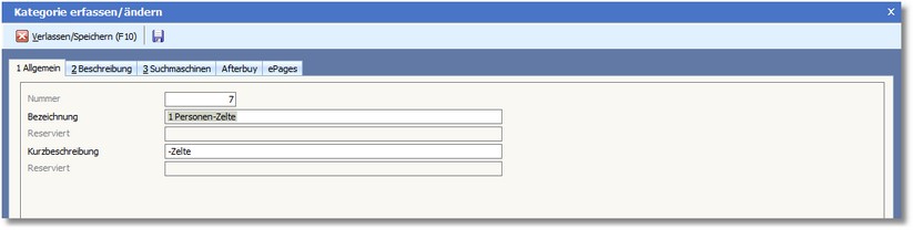 2. In der Karteikarte "Allgemein" werden zunächst allgemeine Daten zur Kategorie erfasst: