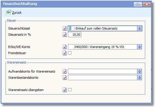 In dieser Maske können Sie abweichende Parameter für die Finanzbuchhaltung hinterlegen: