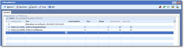 << Hier KLicken um eine Inhaltsübersicht anzuzeigen >> Navigation: Warenwirtschaft > Belegbearbeitung > Wandlung, Teilwandlung und Duplikation > Wandlung/Duplikation in der Belegtabelle > Teilduplikation |