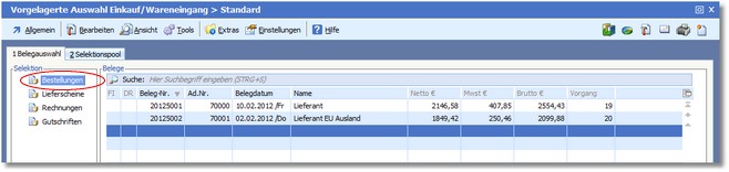 In der Auswahltabelle werden jetzt nur noch die Bestellbelege angezeigt.