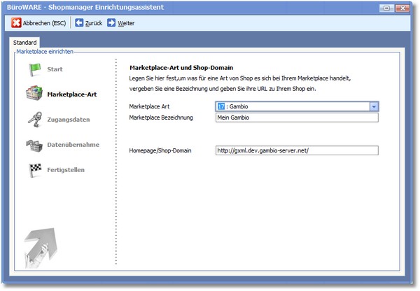 Nachfolgend wird beschrieben, wie die Einrichtung eines Gambio-Marketplaces im Shopmanager der BüroWARE erfolgt.