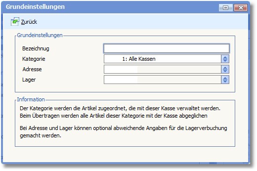 Hier können verschiedene Parameter für die Kasse festgelegt werden: