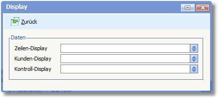 Hinterlegen Sie hier bis zu drei Displays welche beim Kassieren angesprochen werden. Hier wird zwischen "Zeilen", "Kontroll" und "Kunden"-Display unterschieden. Die Funktionalität dieser drei Displays ist identisch.