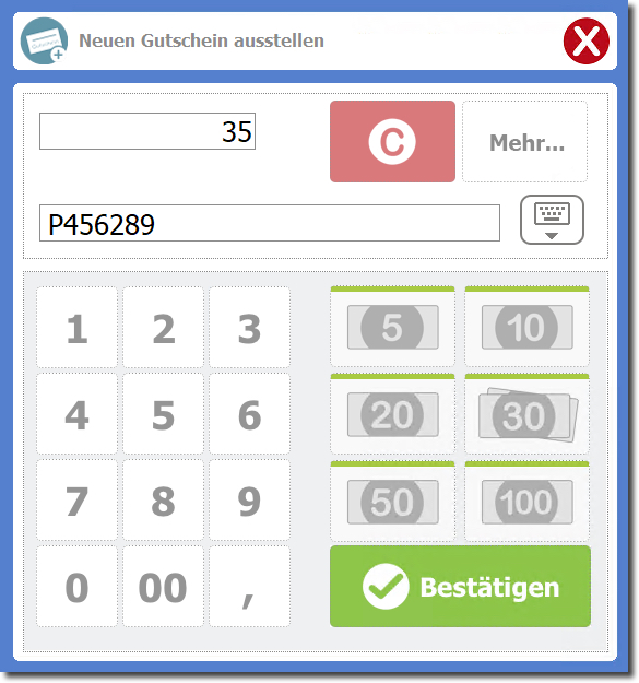 Angenommen, Sie verkaufen einen vorgedruckten Gutschein mit der Nummer "P456289".