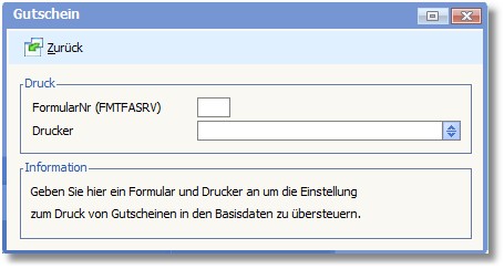 Tragen Sie hier die Nummer des Formulars ein, welches nur an dieser Kasse für den Gutscheindruck verwendet werden soll.
