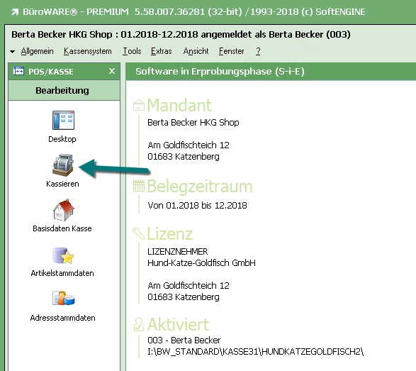 Schritt 1: Wir benötigen einen Bediener mit Kassen-Lizenz
