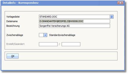 Angezeigt werden jeweils das Erstellungs- und Änderungsdatum des Dokuments. Diese Daten beziehen sich bei eingebundenen Dokumenten auf den Zeitpunkt der Einbindung.