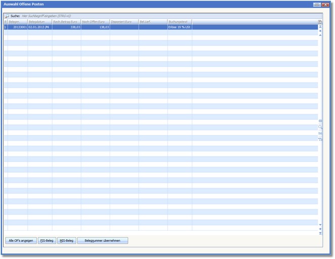 Mit der Funktionstaste [F7] können Sie das FIS für den in der Tabelle markierten Beleg aufrufen.