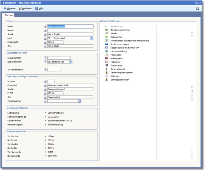 Die Basisdaten - Finanzbuchhaltung werden geöffnet.