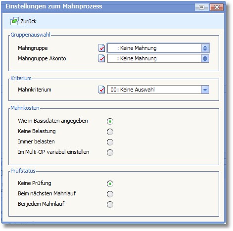 Einstellungen zum Mahnprozess