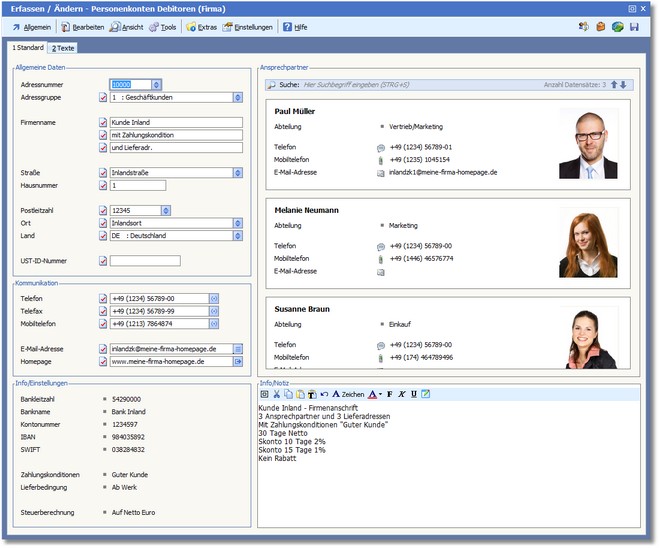 Die Karteikarte "Standard" (Firma)