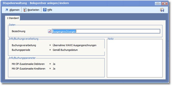 In dieser Karteikarte werden die allgemeinen Daten des Belegordners hinterlegt.
