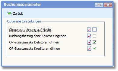 Legen Sie hier zusätzliche Buchungseinstellungen für den Stapel fest: