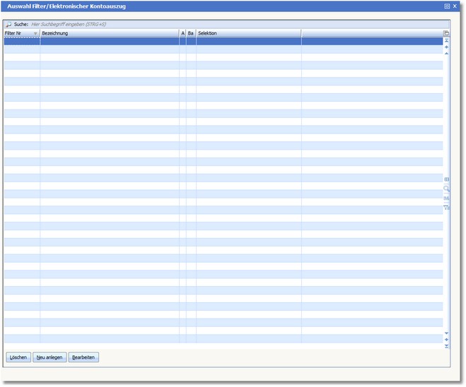 Das Programm öffnet die vorgelagerte Auswahl Filter/Elektronischer Kontoauszug.