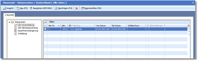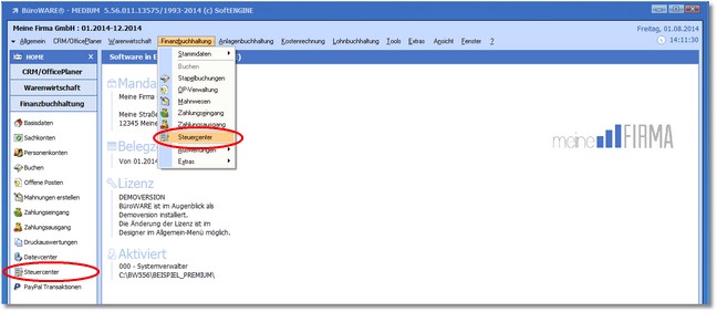 1.Klicken Sie mit der Maus im Hauptmenü auf "Finanzbuchhaltung > Steuercenter"