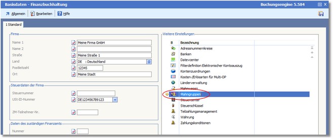 Die Basisdaten der Finanzbuchhaltung werden geöffnet.