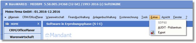 Dieser Teil des Handbuchs dient der Erläuterung der Programmfunktionen zusätzlicher Werkzeuge, die in der Ansicht "BüroWARE komplett" unter dem Menüpunkt "Extras" zu finden sind.