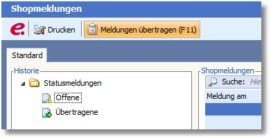 Das Dialogfenster "Shopmeldungen" wird geöffnet.