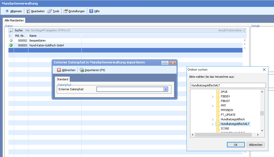 So legen Sie einen Mandanten an und importieren den alten Datenpfad:
