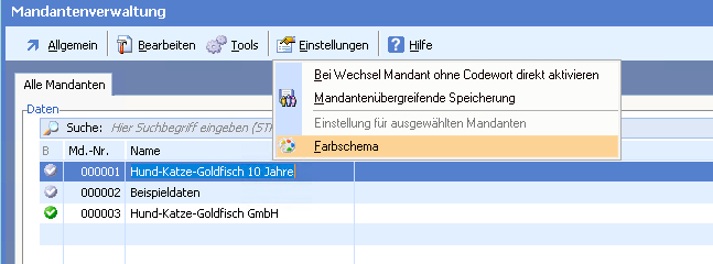 Sie können pro Mandant eine eigene Farbe wählen und somit verhindern, dass im unbewusst falschen Mandanten gearbeitet wird.