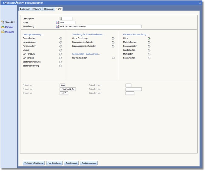 In dieser Karteikarte definieren Sie das Verhalten dieser Leistungsart bei Auswertungen über das Tool EAP (Auswertungen).