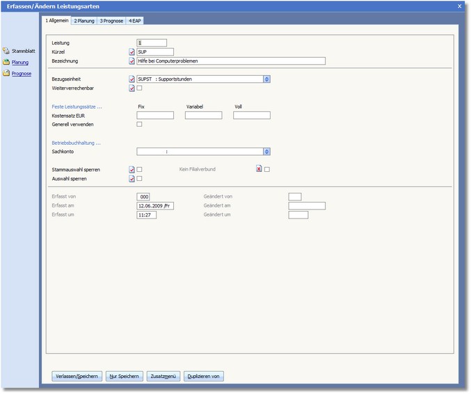 Diese Karteikarte nimmt die allgemeinen Daten zur Leistungsart auf.