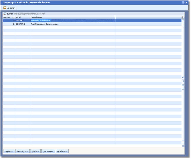 Mit der Funktionstaste [F3] können Sie eine neue Projektschablone erfassen.