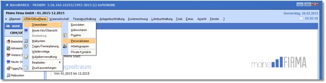1. Klicken Sie mit der Maus im Hauptmenü auf "CRM/OfficePlaner > Stammdaten > Personalstamm".