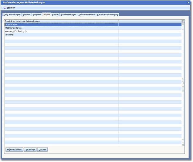 Mit der Funktionstaste [F3] können Sie den Dialog zur Erfassung einer neuen Spamadresse öffnen.