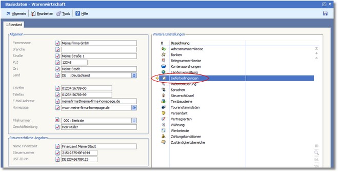 1. Klicken Sie mit der Maus im Hauptmenü auf "Warenwirtschaft > Stammdaten > Basisdaten".