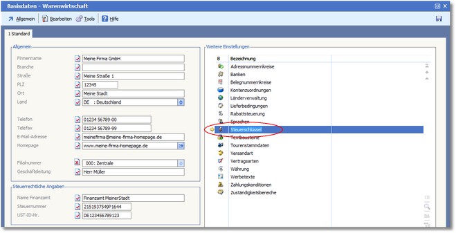 2. Im Bereich "Weitere Einstellungen" doppelklicken Sie nun auf den Eintrag "Steuerschlüssel".