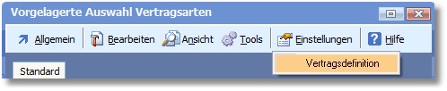 1. Klicken Sie mit der Maus in der vorgelagerten Auswahltabelle der Vertragsarten auf den Symbolbutton <Eigenschaften>