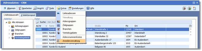 1. In der Adressauswahltabelle klicken Sie im Menü auf "Extras > Anredenverwaltung".