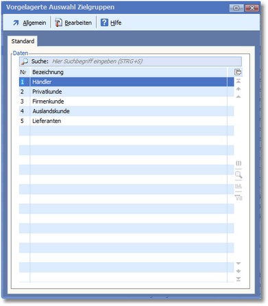 Das Programm öffnet die vorgelagerte Auswahltabelle der Zielgruppen.