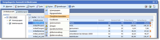 1. Klicken Sie im Artikelstamm auf "Extras > Warengruppen".