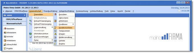 1. Klicken Sie mit der Maus im Hauptmenü auf "Warenwirtschaft > Stammdaten > Handelsstücklisten.
