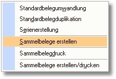 Es handelt sich bei der Sammelbelegerstellung um eine Umwandlung, nur mit dem Unterschied zur Standardumwandlung, dass nicht für jeden Quellbeleg ein Zielbeleg, sondern ein Sammelbeleg erstellt wird. Die so umgewandelten Quellbelege werden im System archiviert.
