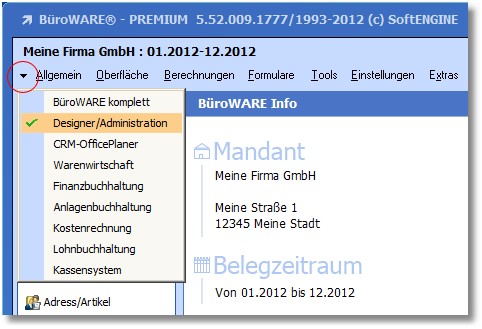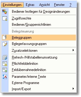 2. Klicken Sie mit der Maus im Hauptmenü auf "Administration" und dann auf "Beleggruppen".