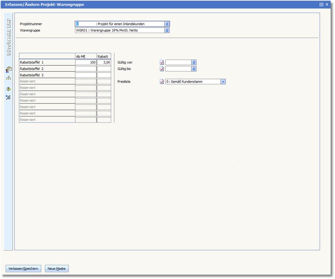 Navigation:  Warenwirtschaft > Stammdaten > Konditionen > Projekt/Warengruppen >