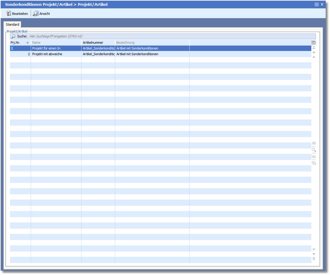 << Hier KLicken um eine Inhaltsübersicht anzuzeigen >> Navigation: Warenwirtschaft > Stammdaten > Konditionen > Projekt/Artikel |