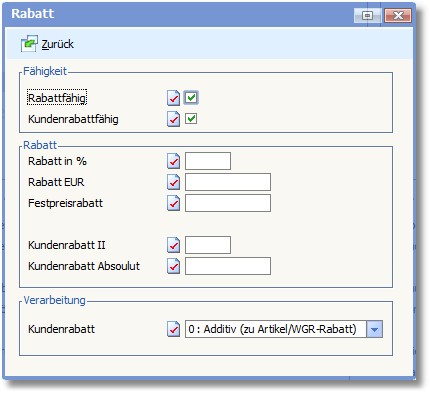In diesem Dialogfenster können für die Position Rabatteinstellungen hinterlegt werden: