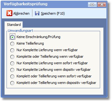 Legen Sie hier fest, wie mit dem Beleg bei Wandlung verfahren werden soll. Aktivieren Sie dazu den entsprechenden Radiobutton und speichern Sie Ihre Eingabe mit [F10].